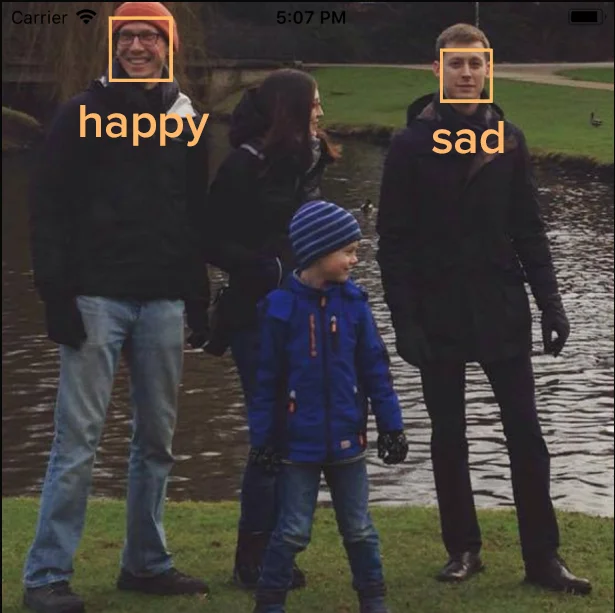 What you see in the screenshots above is two ML models working in tandem. The two ML models are chained together, with the output from the first model fed as input into the second model. The first model is the one that finds a face in a picture and gives you a bounding box. You then take the bounding box and crop the image, so it is just a face and only one face. You then give the new cropped image to the second model. The second model is the one that was used to classify faces as happy, sad, neutral, or angry.