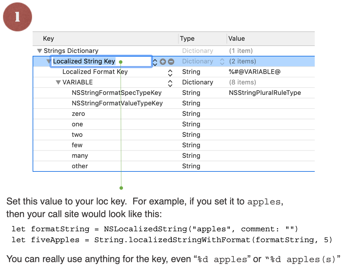 let label.text = NSLocalizedStringPluralized( withLocBaseKey: "apples", withCount: apples.count )
