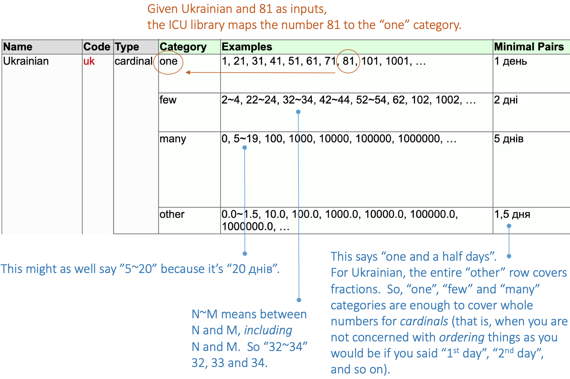 (Yup, I filed a ticket with CLDR to correct that semi-typo in their documentation in the table above for Russian and Ukrainian and my ticket was accepted:)